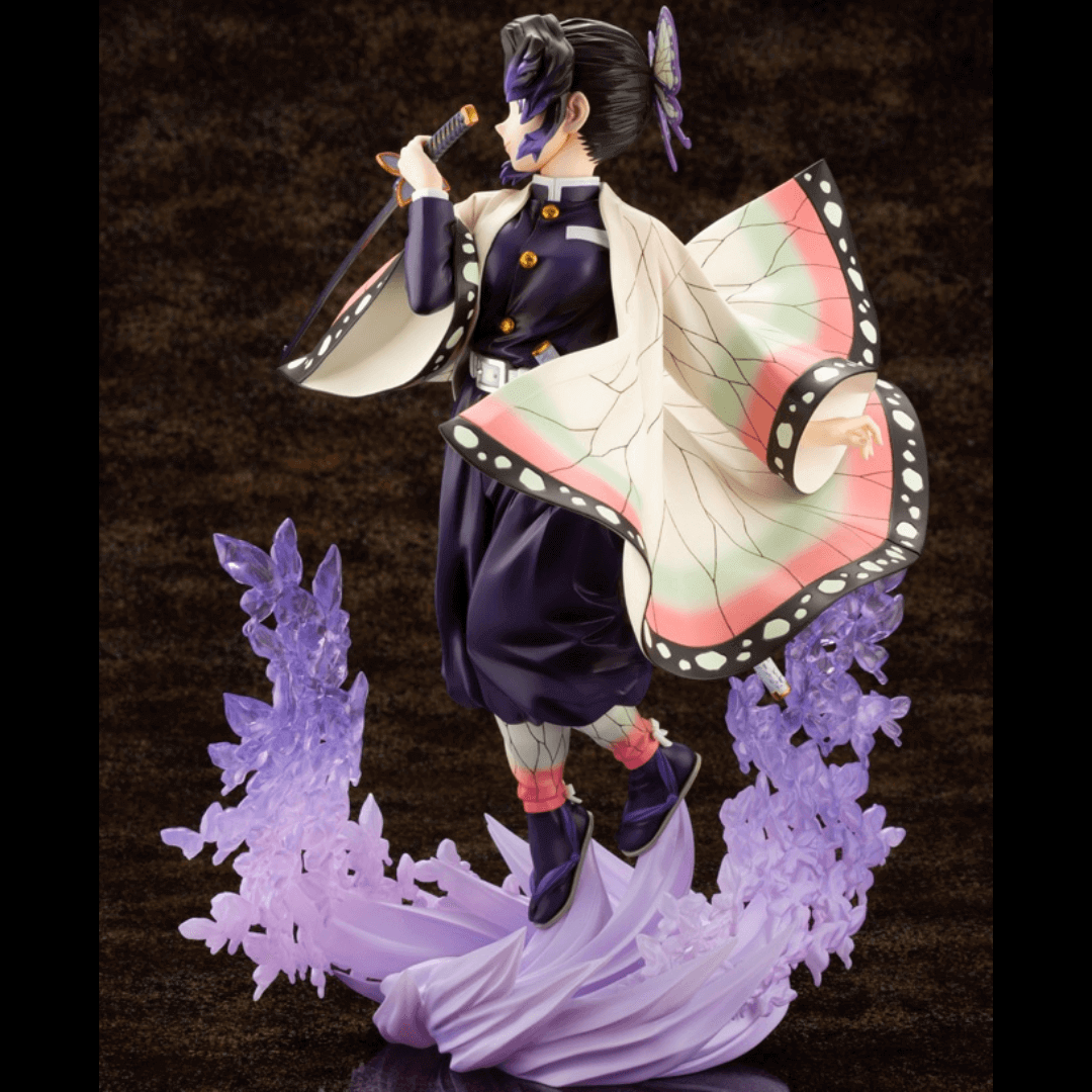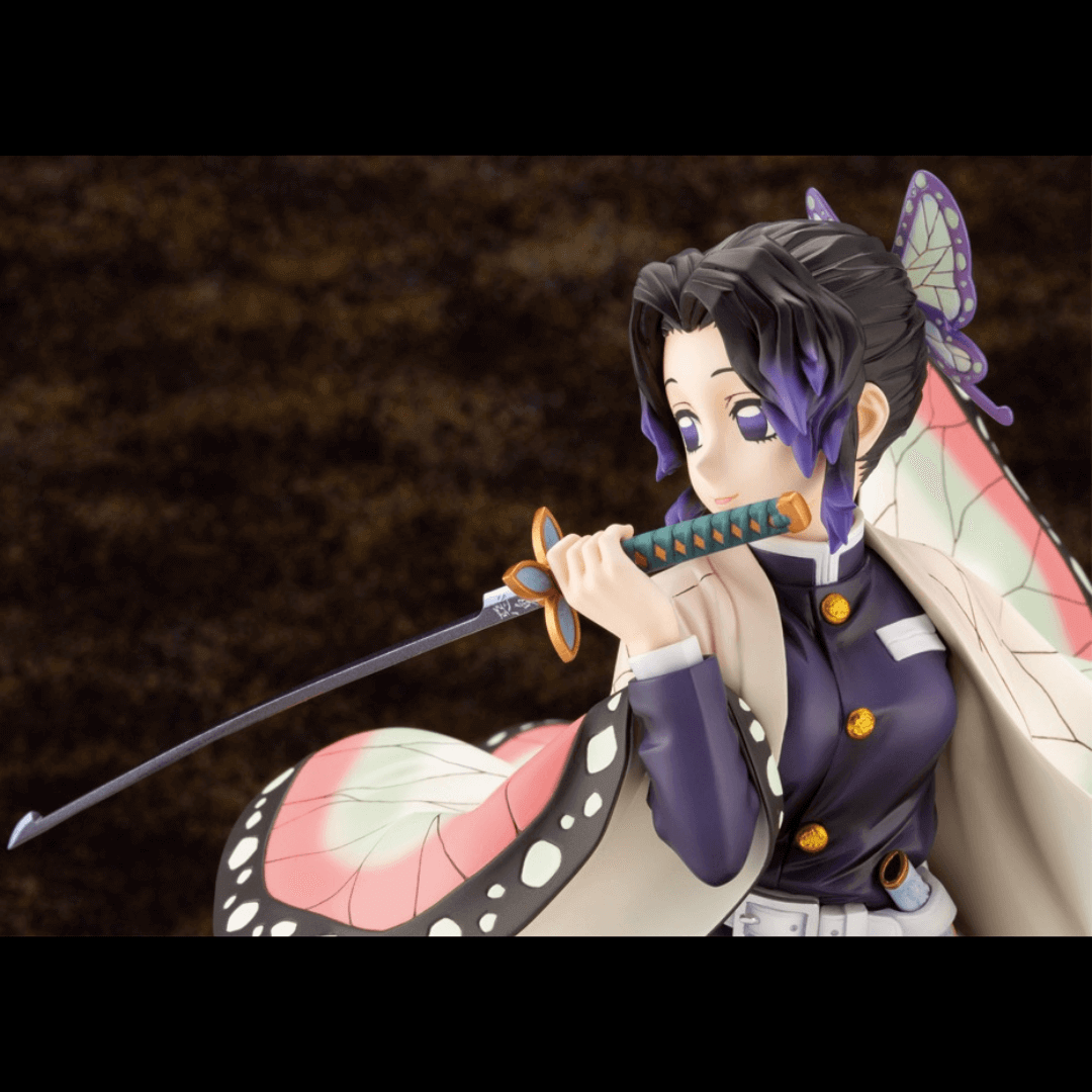 From the "Demon Slayer: Kimetsu no Yaiba", the Insect Hashira Shinobu Kocho joins Kotobukiya's line of incredibly detailed scale figures. She's come to life in this figure form holding her Nichirin Blade with her slim fingertips and haori delicately sculpted. The figure stands atop a gorgeous and dynamic base surrounded by semi-translucent butterflies. Order her for your collection today!