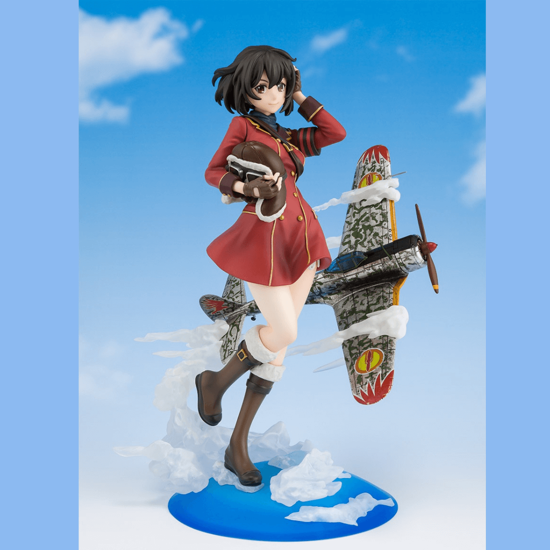 From the 2019 anime series "Kouya no Kotobuki Hikoutai" comes a Figuarts ZERO figure of the pilot who can out-maneuver just about anyone in the sky, Kirie! She comes posed with one foot balanced on the clouds on her base, one hand holding her hat while she uses her other to brush back her hair. She comes standing next to her Hayabusa aircraft for added impact. Order today!