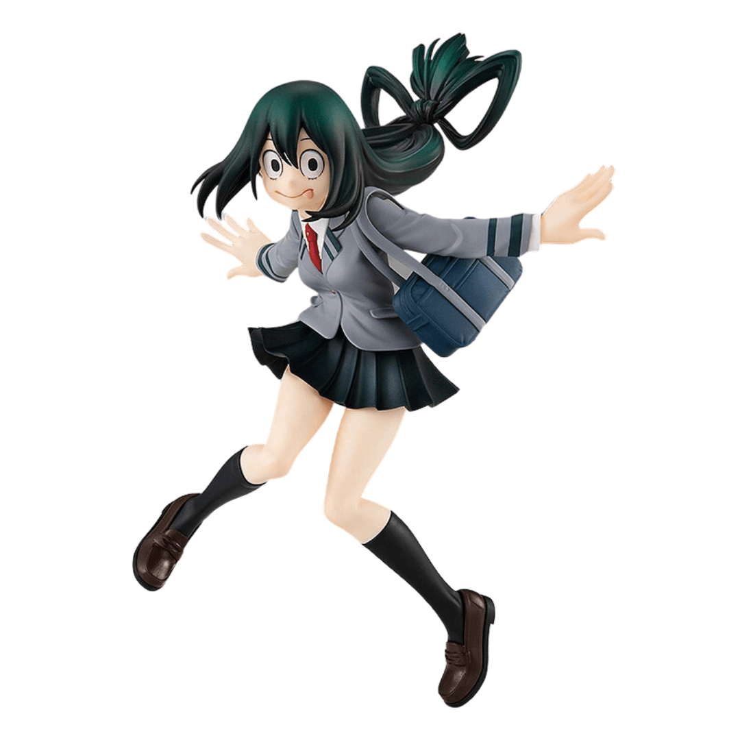 From My Hero Academia presenting a POP UP PARADE figure of Tsuyu Asui in her U.A. High School uniform! She's been recreated in a lively pose while on the way to school.