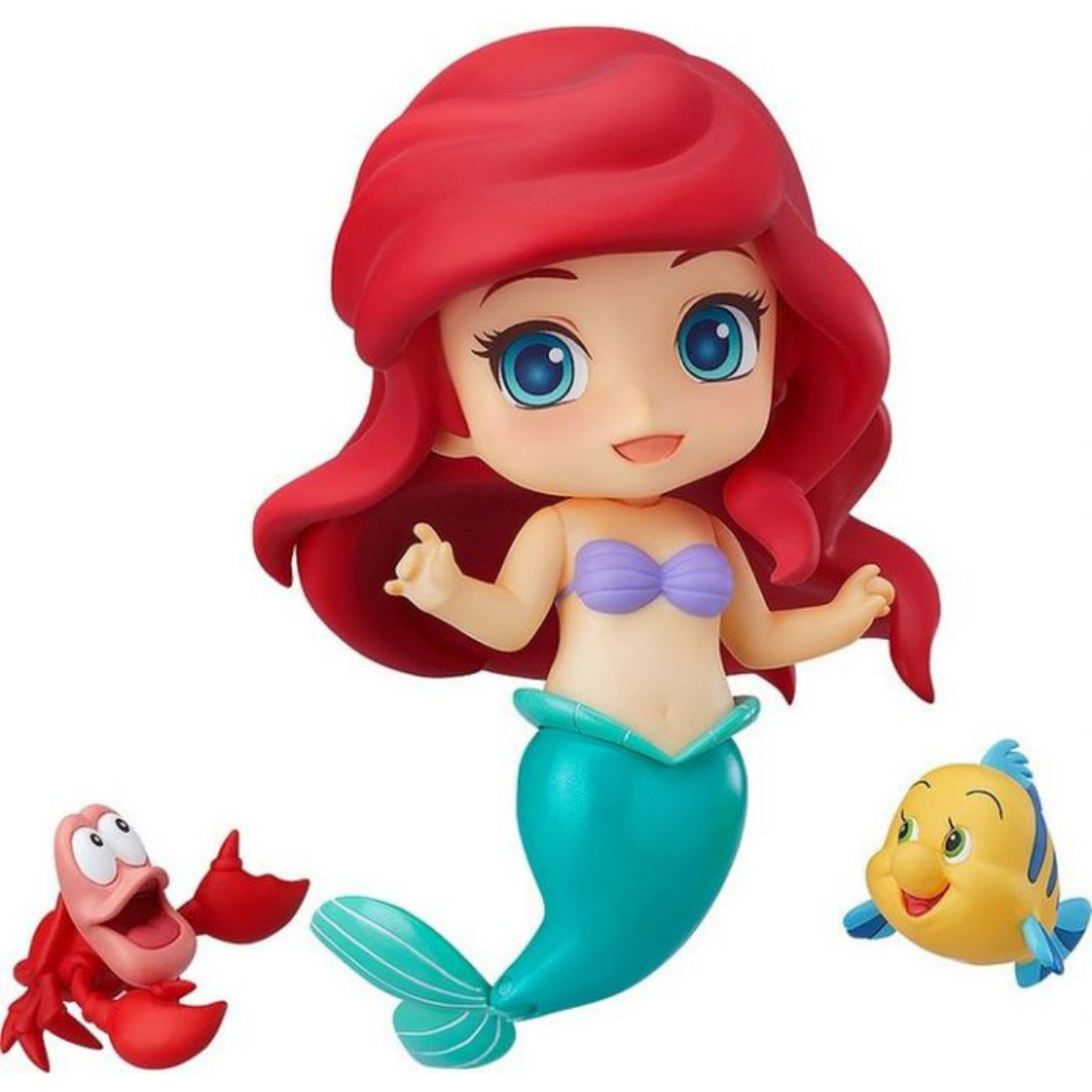 From the Disney classic "The Little Mermaid" comes a rerelease of Nendoroid Ariel! She comes with three face plate expressions including a standard smile, a determined expression and a cheerful smile with closed eyes! The flow of her hair from being under the sea has been captured perfectly on the Nendoroid design, and using the included stand you can pose her in a variety of different swimming displays! Her mermaid tail and fin are also articulated allowing you to display her in a range of poses to swimming fast to a more gentle movement. Alternate parts to display her sitting are also included, which are perfect to pose her sitting and chatting with friends! Sebastian and Flounder are also both included to display swimming by her side!