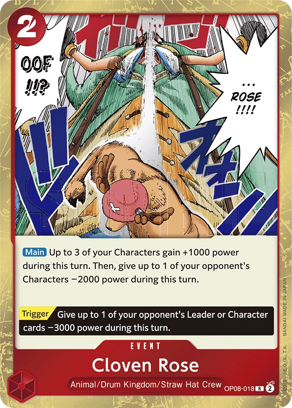 [Main] Up to 3 of your Characters gain +1000 power during this turn. Then, give up to 1 of your opponent's Characters 2000 power during this turn.