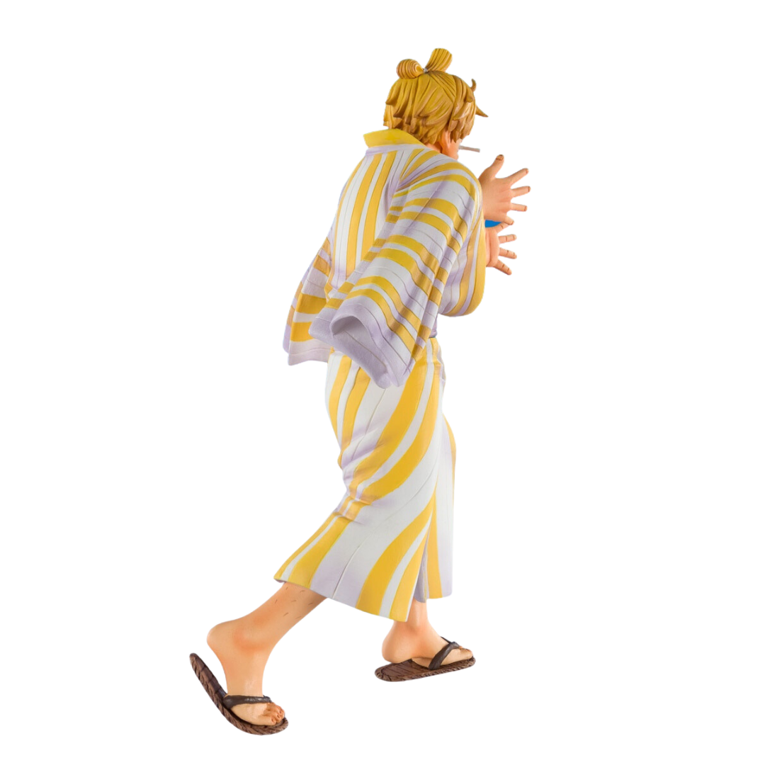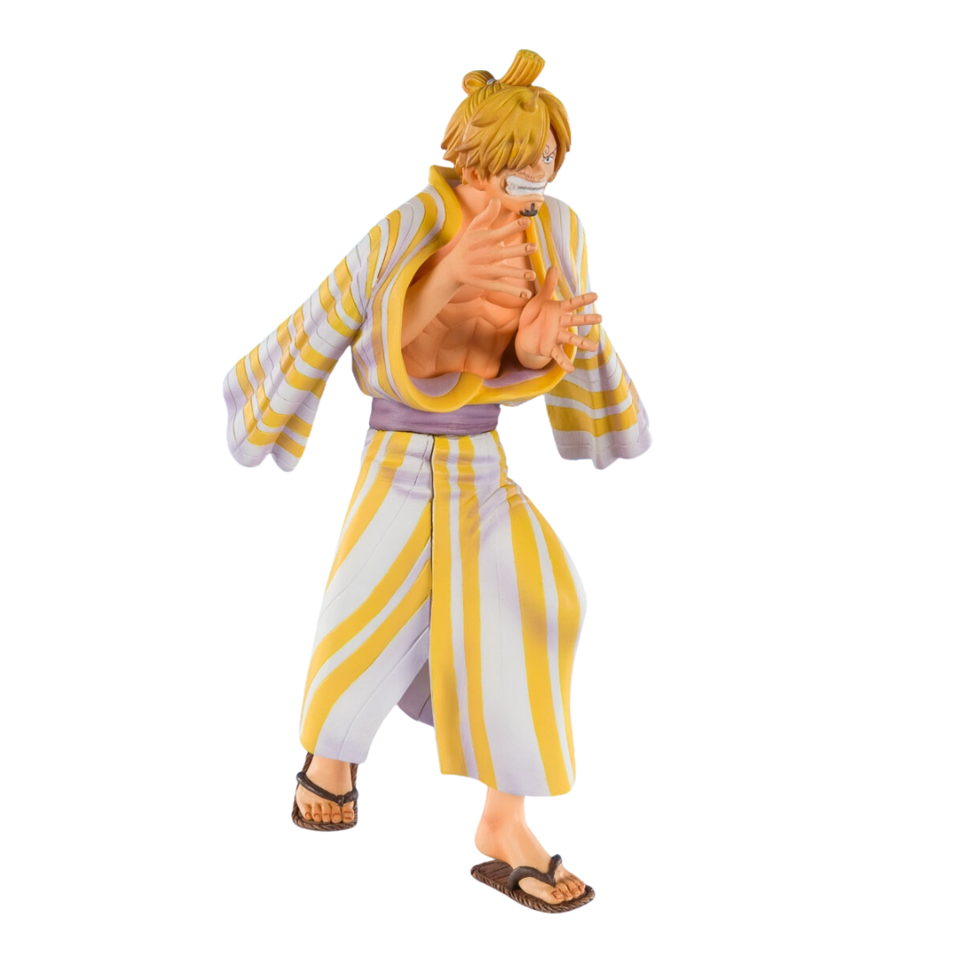 Known in the Wano Country as "Sangoro," Sanji prepares for attack, with his arms slipped out of his sleeves for increased freedom of movement! He also comes with an alternate facial expression for himself and for Zoro, too! Order yours today!