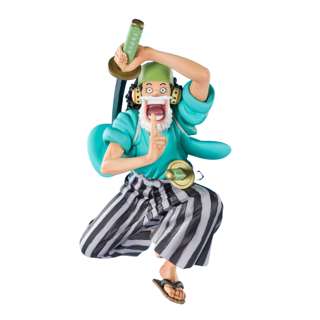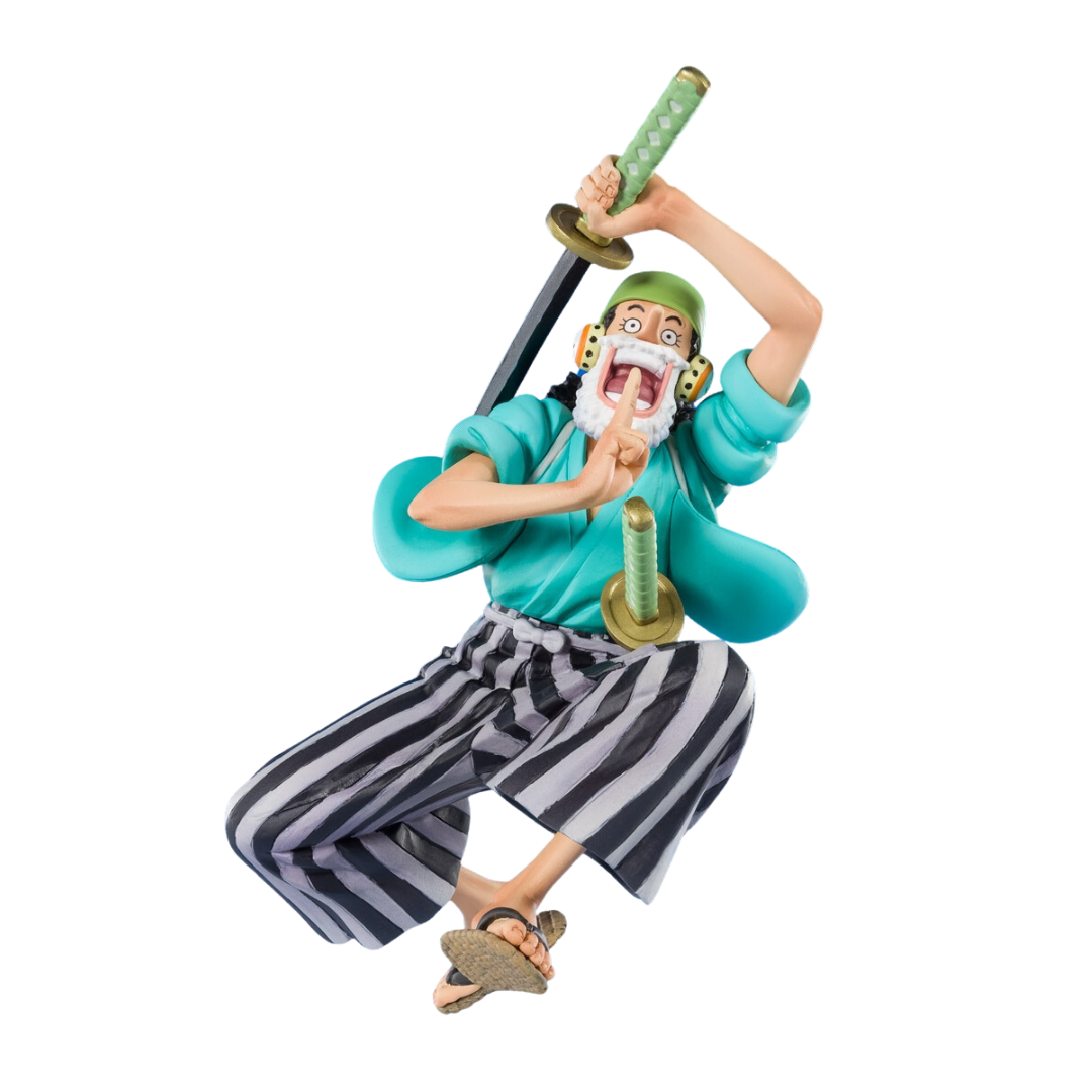 Known in the Wano Country as "Usohachi," Usopp leaps into action! In addition to an alternate facial expression for himself, he also comes with interchangeable facial expressions for Luffy and Chopper, too. Order yours today!